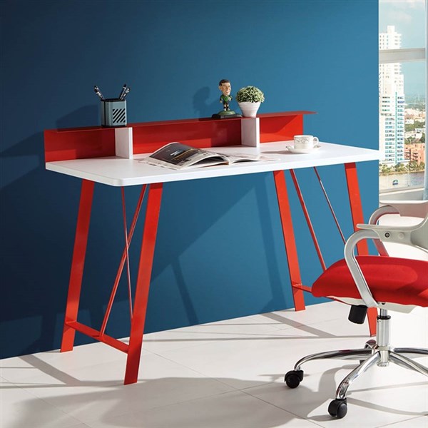 The Baton Rouge computer desk is sure to make your guests rouge with envy - The beautiful saturated red detailing adds a pop of color to any room, while the small footprint and lightweight design ensures it can easily slot into any environment to elevate your home office environment