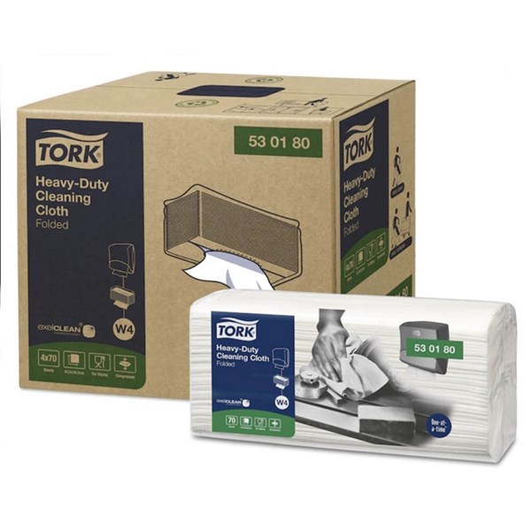 TORK 530180 W4 HEAVY DUTY CLEANING CLOTH FOLDED LARGE WHITE PACK 70 SHEETS