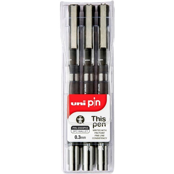 UNI-BALL 200 PIN FINELINER PEN 0.3MM BLACK WALLET 3