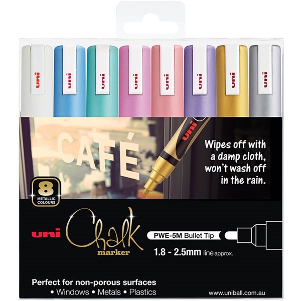 UNI-BALL CHALK MARKER BULLET TIP 2.5MM ASSORTED METALLIC PACK 8
