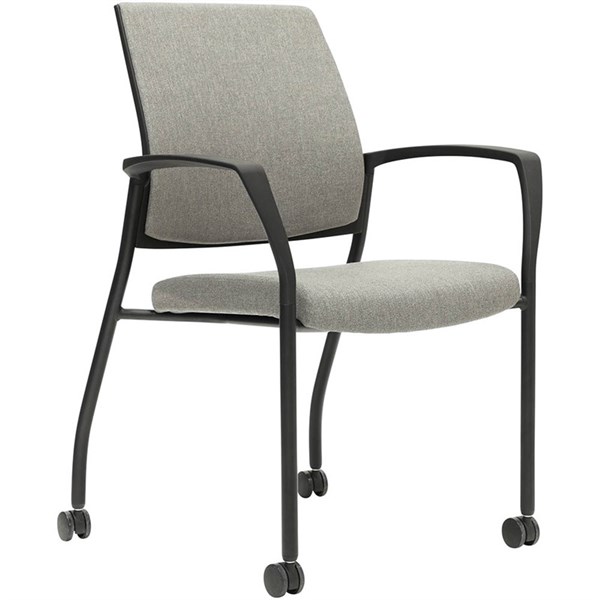 Urbin multi-purpose stackable armchair with upholstered inner and outer back and upholstered padded seat - Fully welded black powdercoat 4 leg steel frame on castors