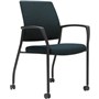Urbin multi-purpose stackable armchair with upholstered inner and outer back and upholstered padded seat - Fully welded black powdercoat 4 leg steel frame on castors