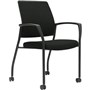Urbin multi-purpose stackable armchair with upholstered inner and outer back and upholstered padded seat - Fully welded black powdercoat 4 leg steel frame on castors