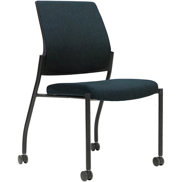 URBIN 4 LEG CHAIR CASTORS BLACK FRAME NAVY SEAT INNER AND OUTER BACK