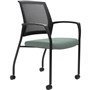 Urbin multi-purpose stackable armchair with mesh back and upholstered padded seat - Fully welded black powdercoat 4 leg steel frame on castors