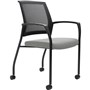 Urbin multi-purpose stackable armchair with mesh back and upholstered padded seat - Fully welded black powdercoat 4 leg steel frame on castors