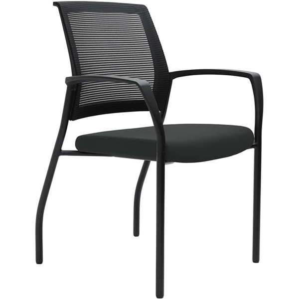 Urbin multi-purpose stackable armchair with mesh back and upholstered padded seat - Fully welded black powdercoat 4 leg steel frame on glides