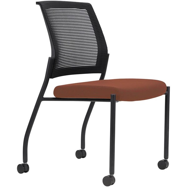 URBIN 4 LEG MESH BACK CHAIR CASTORS BLACK FRAME BRICK SEAT