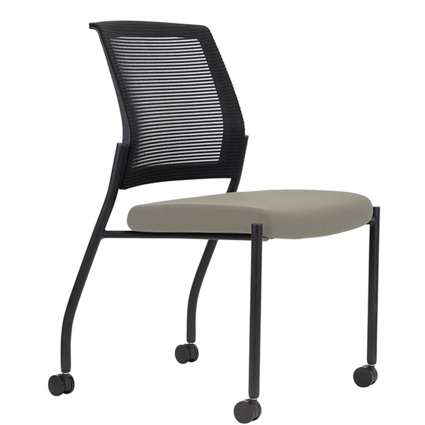 URBIN 4 LEG MESH BACK CHAIR CASTORS BLACK FRAME DRIFTWOOD SEAT