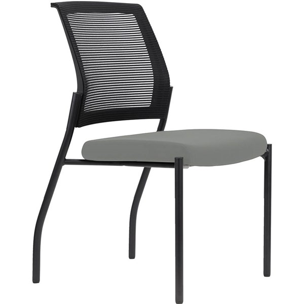 Urbin multi-purpose stackable chair with mesh back and upholstered padded seat - Fully welded black powdercoat 4 leg steel frame on glides