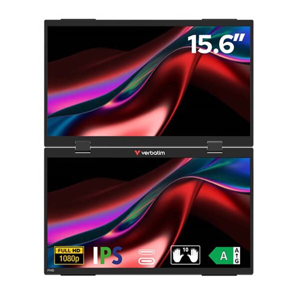 VERBATIM FHD PORTABLE DUAL MONITORS 15.6INCHES BLACK