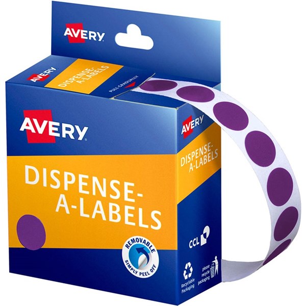 AVERY 937264 ROUND LABEL DISPENSER 14MM PURPLE BOX 1050