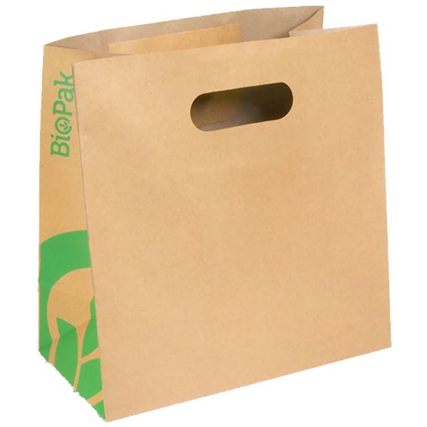 BIOPAK KRAFT PAPER BAGS DIE-CUT HANDLE SMALL 270 X 280 X 145MM CARTON 250
