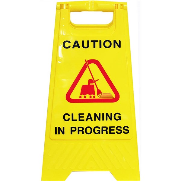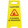 • Cleanlink safety sign 'Cleaning In Progress' is a light weight flat fold A-frame in bright yellow, drawing attention to ensure safety