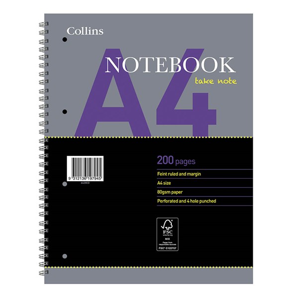 COLLINS ESSENTIAL RULED NOTEBOOK A4 200PAGES GREY