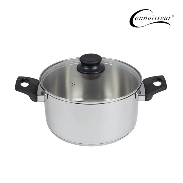 CONNOISSEUR STAINLESS STEEL STOCKPOT WITH GLASS LID 240MM SILVER