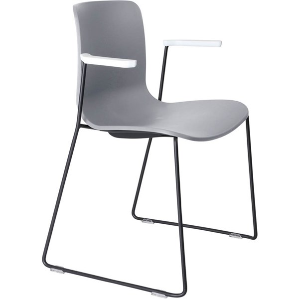 DAL ACTI CHAIR SLED BASE ARMS WHITE ARM-PADS AND BLACK POWDERCOAT FRAME LIGHT GREY POLYPROP SHELL