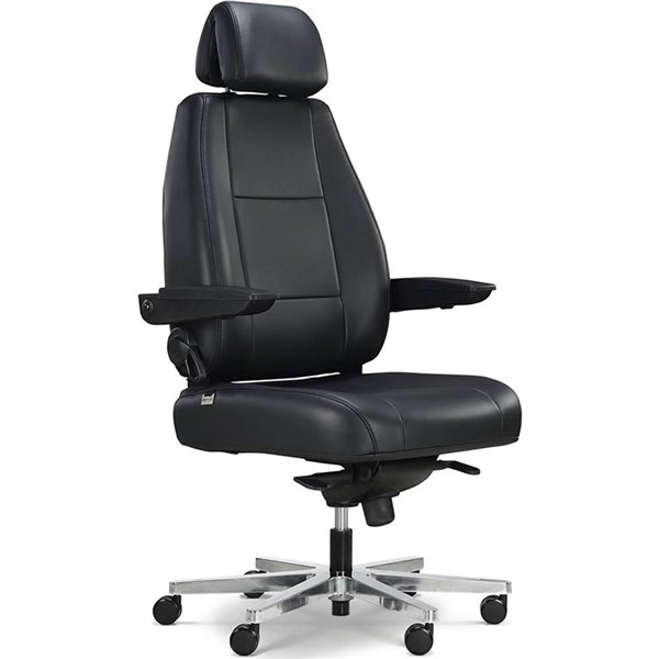 DAL CONTROLMASTER HEAVY DUTY CHAIR ADJUSTABLE ARMS AND HEADREST BLACK LEATHER