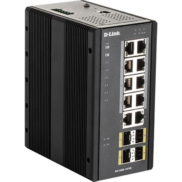 D-LINK DIS-300G-14PSW 14-PORT GIGABIT INDUSTRIAL MANAGED POE SWITCH WITH 10 1000BASE-T (8 POE+) PORTS AND 4 SFP PORTS