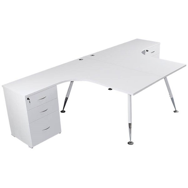 FLEET 2 PERSON BACK TO BACK CORNER WORKSTATION DRAWERS / FILE HANGER 3000 X 1500MM WHITE