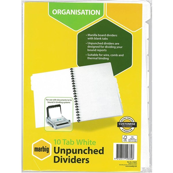 MARBIG DIVIDER UNPUNCHED MANILLA 10-TAB A4 WHITE