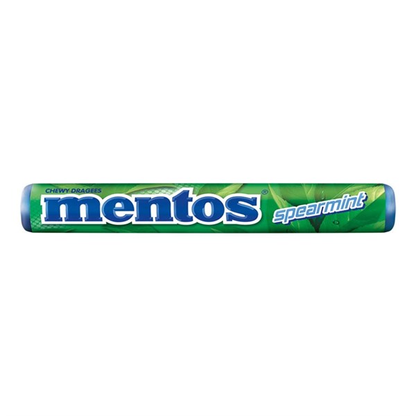 Mentos roll is made up of Spearmint flavoured pieces - The hard outer shell of these refreshing fruit Mentos dissolves in your mouth