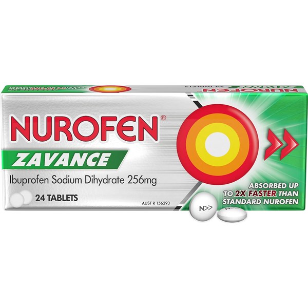 NUROFEN ZAVANCE FAST PAIN RELIEF TABLETS 256MG IBUPROFEN PACK 24