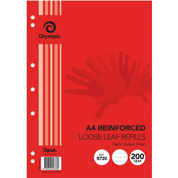 OLYMPIC R720 REINFORCED LOOSE LEAF REFILL 7MM FEINT RULED 55GSM A4 PACK 200