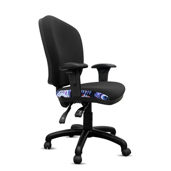 • A unique commercial fabrics designed by Nelly Patterson (Indigenous Artist) combined with K2 black fabric to upholster the chair