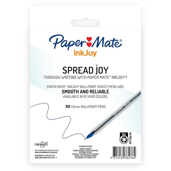 PAPERMATE INKJOY 100 BALLPOINT PENS MEDIUM BLUE PACK 10