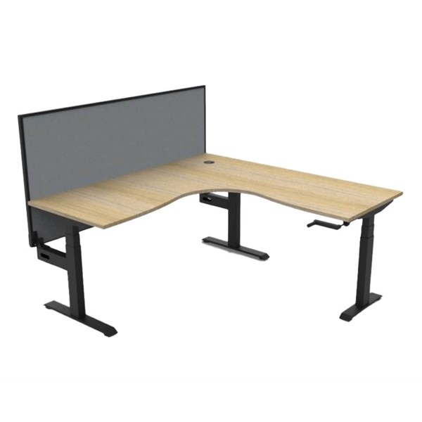 RAPIDLINE BOOST CRANK CORNER WORKSTATION WITH SCREEN 1800 X 1500 X 750MM NATURAL OAK TOP AND BLACK SATIN FRAME