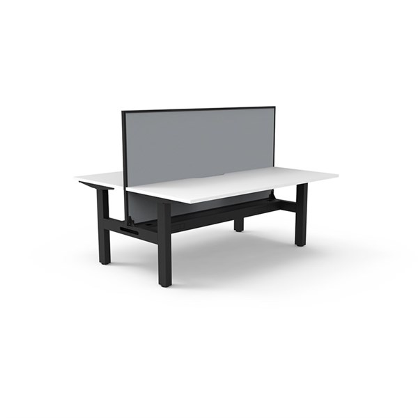 RAPIDLINE BOOST STATIC DOUBLE SIDED WORKSTATION WITH SCREEN AND CABLE TRAY 1500MM NATURAL WHITE TOP/ BLACK FRAME/ GREY SCREEN