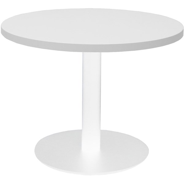 The Rapidline Round coffee table has a 600mm round top with a flat disc base that sits flush to the floor - With a choice of 4 top finishes and 3 base colours