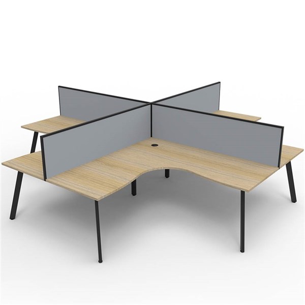 RAPIDLINE ETERNITY CORNER WORKSTATION 4 PERSON 1800 X 1800MM WITH SCREEN NATURAL OAK / BLACK