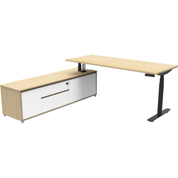- The integrated side cabinet provides ample storage with drawers and cupboards, enhancing workspace organisation and keeping your essentials within easy reach