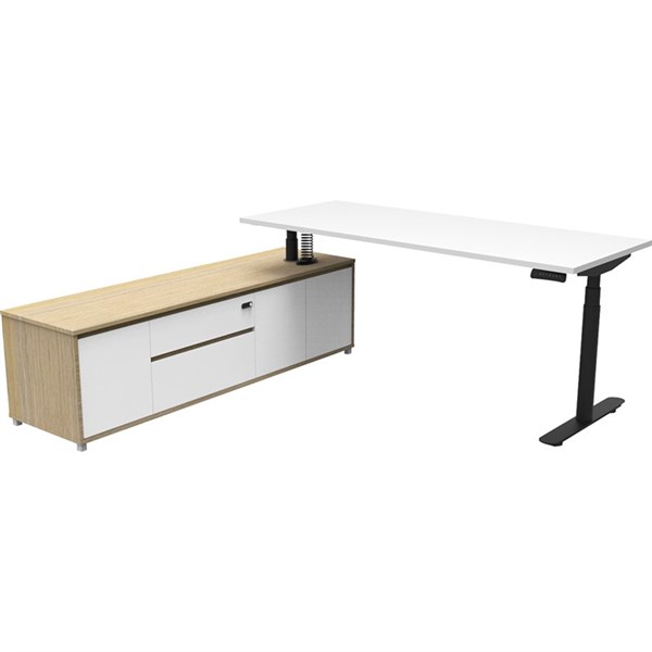 - The integrated side cabinet provides ample storage with drawers and cupboards, enhancing workspace organisation and keeping your essentials within easy reach