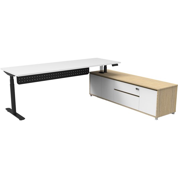 RAPIDLINE HALO PLUS EXECUTIVE HEIGHT ADJUSTABLE WORKSTATION WITH MODESTY PANEL RHC 2100 X 750MM NATURAL WHITE/BLACK