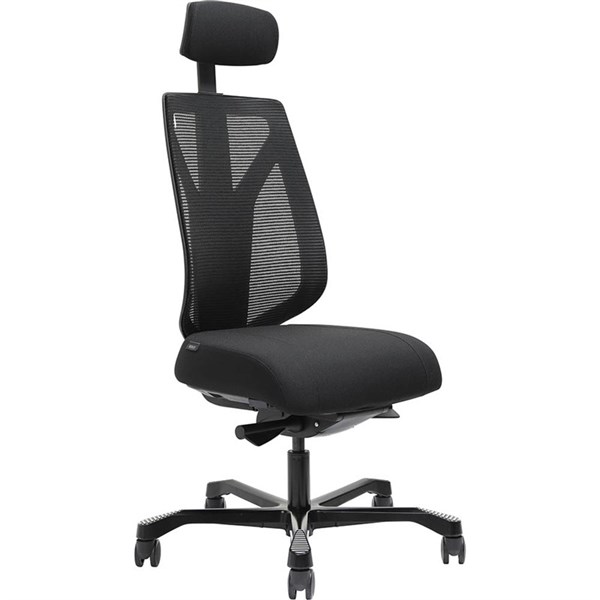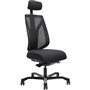 SERATI HIGH MESH BACK CHAIR BODY-WEIGHT SYNCHRO 2-D HEADREST NO ARMS BLACK ALUMINIUM BASE FOOTPLATES GABRIEL FIGHTER BLACK FABRIC