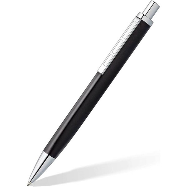 - The clip, push button, and nib are high polished silver, with the STAEDTLER Mars head embossed on the top of the push button and STAEDTLER lettering all around the upper decorative ring