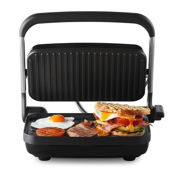 - Easily go from frying bacon and eggs, searing thick steaks to toasting multilayer sandwiches with a simple lift and push of a lever at any height