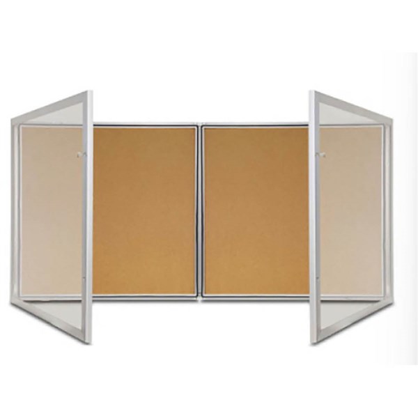 TX Weather Resistant Double Door Notice Case 1350 x 980mm Cork Pinboard