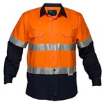 PRIME MOVER MA801 COTTON DRILL SHIRT LONG SLEEVE LIGHTWEIGHT WITH TAPE 2TONE ORANGE NAVY 5XL